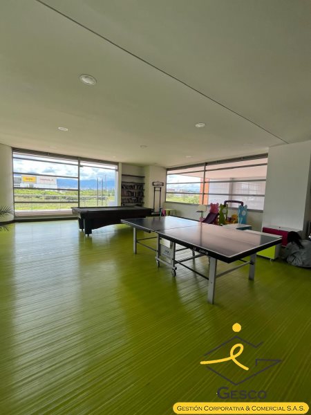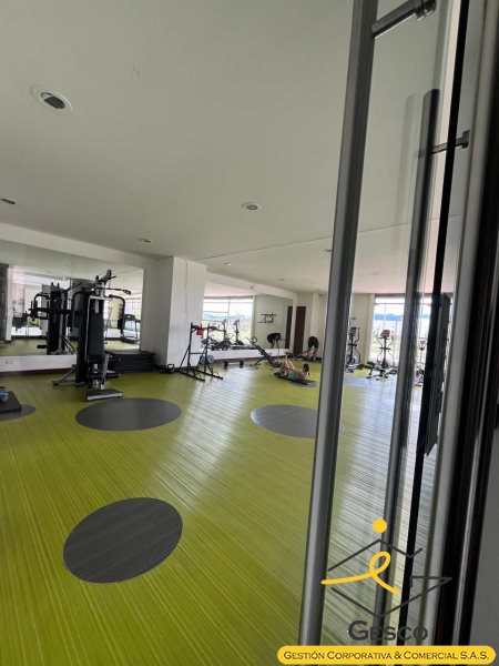 conjunto cuenta con portería 24 horas, ascensor, piscina ,gimnasio, BBQQ, cancha sintética de microfutbol , zonas verdes salón de juegos shut de basuras .